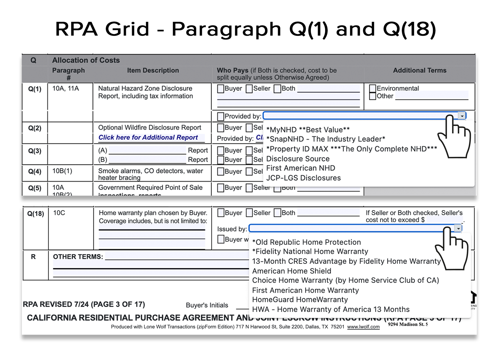 Service Providers are pre-loaded and fully integrated into zipForm for use in your Purchase Agreements: